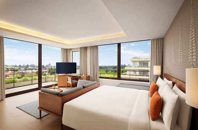 Nestled 20 minutes away from Gaya airport, within the lush landscapes of this sacred city, the hotel is conveniently located near the UNESCO World Heritage site, Mahabodhi temple, and the Bodhi tree. The minimalist design of our hotel fosters a sense of calm for Buddhist followers and those seeking a break from the city chaos.