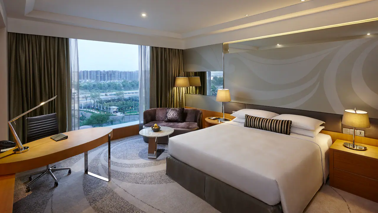 Hyatt Regency Gurgaon is one of the largest five-star convention hotel in Gurgaon with the meeting and event facility to accommodate up to 3000 people. It is strategically located in the rapidly expanding corporate and residential hub of India off the Delhi-Jaipur National Highway 8. Located in close proximity to corporate business hub of Gurgaon and IMT Manesar, with easy access from southern periphery road and Dwarka express highway, the hotel is an ideal weekend getaway for Delhi NCR residents and offers a convenient stop over for tourists covering the ‘Golden Triangle’ of Delhi, Agra and Jaipur.