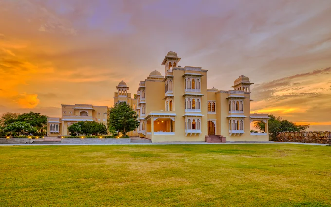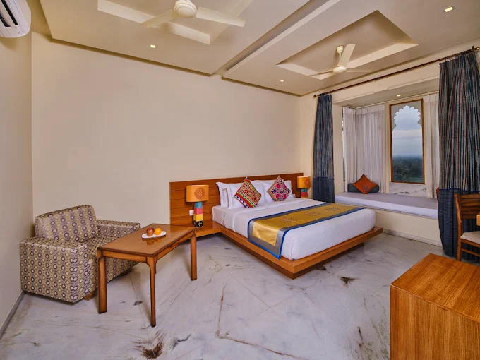 The resort features 32 elegantly designed rooms and suites, each reflecting traditional Rajasthani architecture with modern amenities: