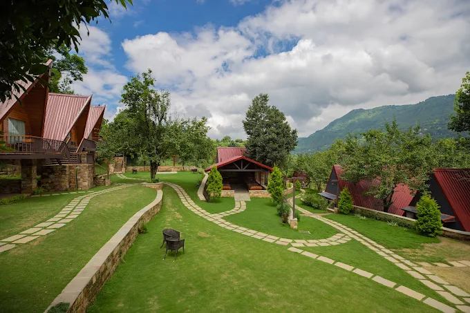 Tucked away in a lush orchard near the tranquil Naukuchiatal Lake, The Pear Orchard Resort by Countryside offers a charming escape into nature. Sprawled over 4 acres of greenery, the resort features beautifully crafted cottages and villas made from timber and stone, blending rustic elegance with modern comfort. Each accommodation includes private decks, premium linens, heaters, LED TVs, and valley or orchard views.