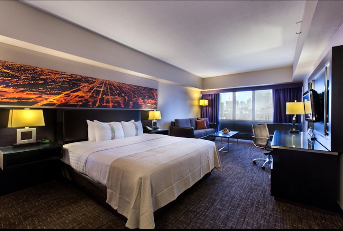 Holiday Inn Chicago Dwtn - Wolf Point, overlooking the Chicago River, offers breathtaking cityscape views. Centrally located in River North, Fulton Market, and The Loop, guests are steps away from attractions like dining and attractions on the Riverwalk, Millennium Park events, Magnificent Mile shopping, Willis Tower's Ledge, and The Art Institute of Chicago. Freshly redesigned and well-appointed guestrooms feature 49-inch LG TVs, a mini-fridge, a Keurig coffee maker, and free Wi-Fi. Enjoy an exhilarating workout at our 24-hour fitness center, take a swim in our heated and lap-lined indoor pool, and be sure to stop by Riverbend Market for a quick snack, barista coffee, or a meal on the go.