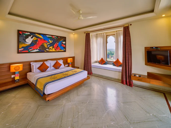 The resort features 32 elegantly designed rooms and suites, each reflecting traditional Rajasthani architecture with modern amenities: